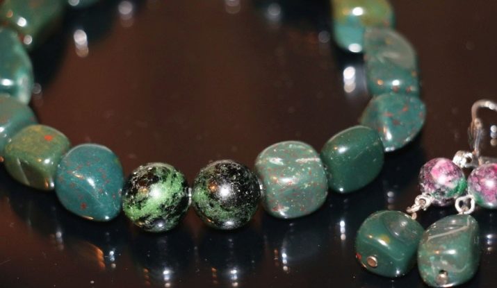 - Bracelet and earrings with heliotrope. Such a product looks simple and interesting due to the fact that there is a lot of green and it appears in a variety of shades. This jewelry is perfect for red-haired and green-eyed ladies.