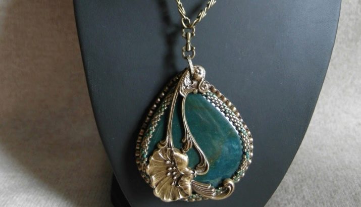 - Girls who like massive products can take a closer look at the heavier version of the necklace. Here the heliotrope is in a very beautiful frame, and a delicate flower is placed below. The abundance of various pebbles only adds elegance to the decoration.