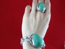 Many beautiful chrysoprase created products.
