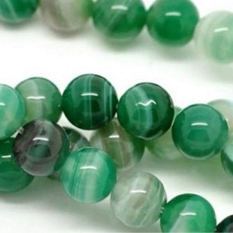 A close relative of chrysoprase is agate, which belongs to the banded varieties of chalcedony. In it, parallel multi-colored layers diverge circularly, like waves on water. Chrysoprase differs from agate in the absence of pronounced layering. It is more homogeneous, it is precisely uniform color, brightness and purity that is appreciated in it, and in agate - a fancy pattern.