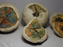 With prolonged heating, magnetic properties appear - the stone is significantly reduced in size and turns into a small magnetic black ball.