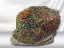 Marcasite - iron sulfide, consists of 46.6% of iron and 53.4% of sulfur. The chemical formula is FeS2. Under conditions of high humidity it is unstable and can decompose over time to sulfuric acid (H2SO4) and iron sulfates (Fe2SO4). In the course of the reaction, the mineral flows (runaway), a rainbow coating (a combination of yellow, red and blue) appears on the surface.