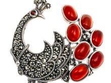 In a special trend of recent years, marcasite brooches. There are many models in the form of animals and birds. Often there are lizards, turtles, cats, elephants, owls, hummingbirds, peacocks. Such accessories will add chic to any everyday look.