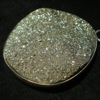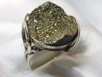 The ideal setting for a radiant pyrite is silver. Silver jewelry looks stylish and elegant. Most often, silver plays the role of a solid base on which a placer of small processed marcasite crystals is attached. They are fixed with heavy-duty glue and jewelry “paws”.