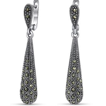 Models of elongated earrings with marcasite inserts in the form of droplets are very popular. Looks chic sets, including necklaces and earrings.