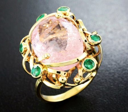 In addition, morganite is used in cocktail rings with a large stone framed with gold or silver.