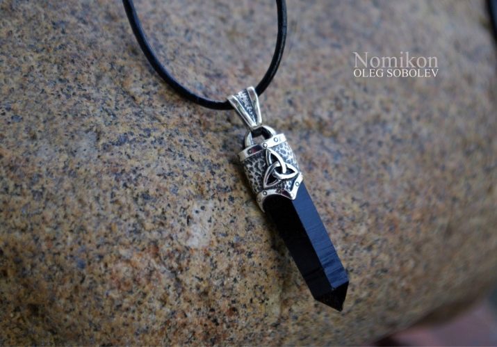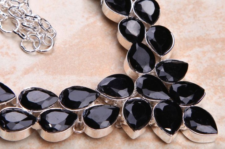 Due to its unique properties and appearance, black crystal is widely used by jewelers in the manufacture of jewelry. Crystals having a pronounced layered structure and a quartz middle are in special demand. The stone is also used as ornamental material in the creation of inlays, figurines and seals.
