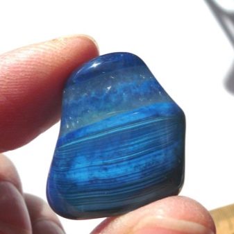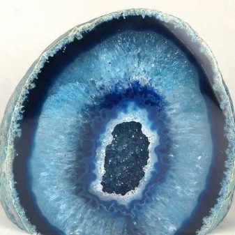The layers of the mineral can be separated by blurry or clear boundaries. The core of the stone is often dull, the edges are more transparent. When polished, the dullness disappears.You can often hear that blue and blue agate is the talisman of prominent people: writers, artists and other artists.