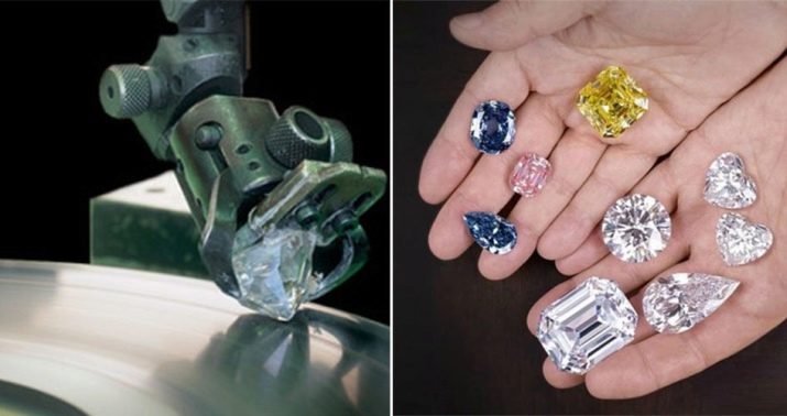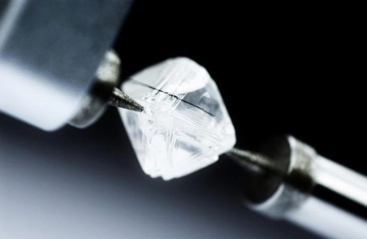 Making diamonds, craftsmen resort to phased processing methods. The rough blank is cleaned of impurities of other minerals, if any. Then a rough sawing is made, thanks to which the main shape of the future product is formed. After that, the cut begins.