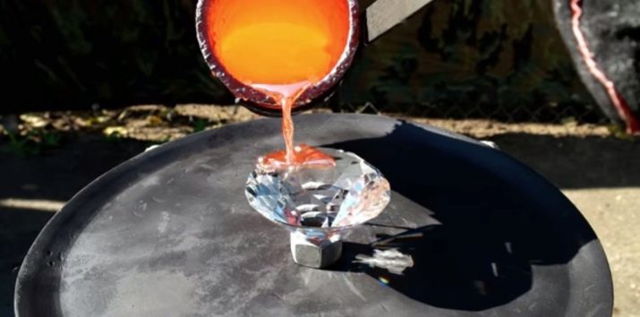Another method for processing diamond is hot iron processing. This mineral is able to enter into a chemical reaction with a metal heated to high temperatures. Hot iron begins to absorb the carbon component of diamond. At the point of contact between the red-hot metal and the mineral, the latter melts at the molecular level.