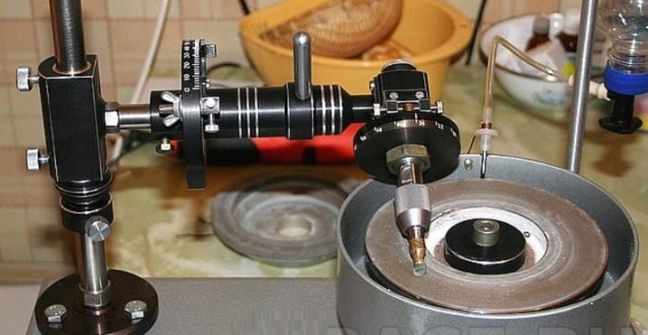To polish a diamond mineral, devices are used that are equipped with special nozzles - discs or plates having a thickness, shape, and material of manufacture corresponding to the name of the procedure being performed. On the working surfaces of these nozzles fractions of diamond chips of various diameters are applied.