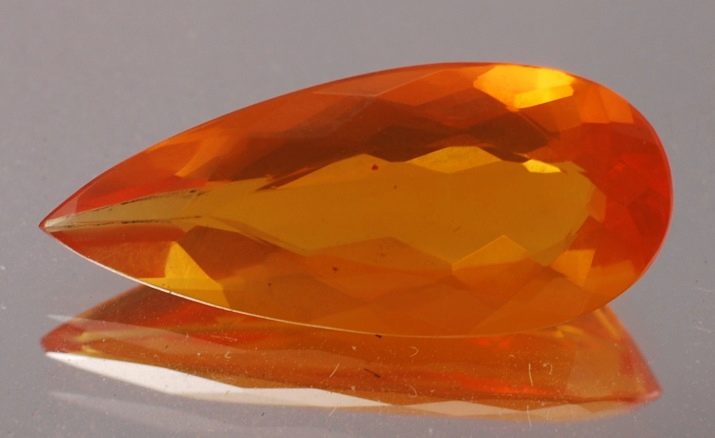 - Fiery or red. These minerals are presented in the form of transparent or translucent stones of saturated red or peach colors. Some breeds of such stones have a pronounced reddish opalescence (for example, mined in Mexico).