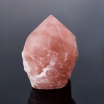 You can find native stones of various pink tones, in shape resembling berries or fruits, in connection with which subspecies of rose quartz are highlighted, having appropriate names and descriptions.