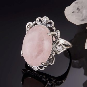 Very beautiful and noble rose quartz looks in jewelry. Beads, necklaces, pendants, earrings, rings, brooches, bracelets are made from it. Pendants are often purchased as a talisman. The stone is delightful in a frame of silver, peerless in a frame of platinum or white gold. When selecting a product, one should take into account the fact that silver reveals the potential of a stone more than all metals.