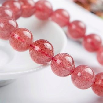 - Strawberry - often mistaken for a strawberry subspecies, it is really difficult to distinguish between them. This mineral is more saturated in color, inside there are weaves in the form of small threads, and the density of speckled grains is slightly higher.