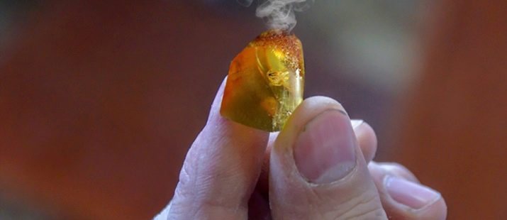 When rubbing a stone, its temperature rises, and you can smell turpentine or a pine aroma. If you try to melt amber with the hot end of the needle, you can see white smoke and smell the rosin. Any fake will emit a chemical flavor.