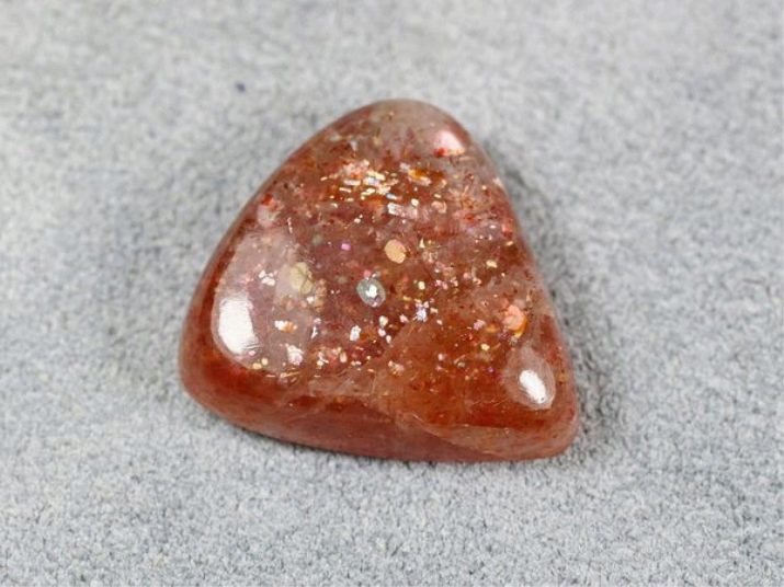 - Norwegian The sun stone has a rich and vibrant color. It is decorated with small inclusions of hematite. Hue ranges from dark orange to light brown.