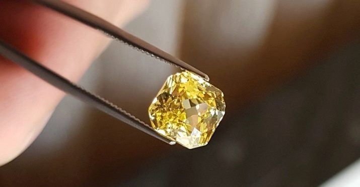 - Zircon. It is an unstable mineral that does not tolerate chemical attack. This is a natural substitute for diamond with an appropriate shine, the price of which is several times lower. The stone has a variety of colors, including yellow and golden hues.