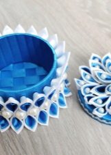 From them beautiful ornaments are formed, with which the craftswomen can truly surprise others. At the same time, they are made as simple little flowersso and more complex decorations in the form of cascades. Over time, this method was borrowed to create decor items, in particular, stylish boxes for storing little things.