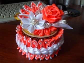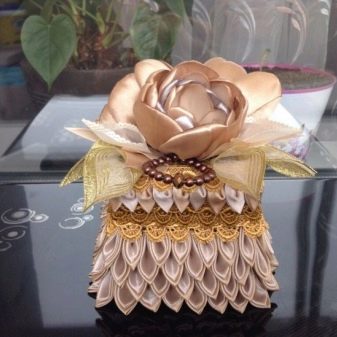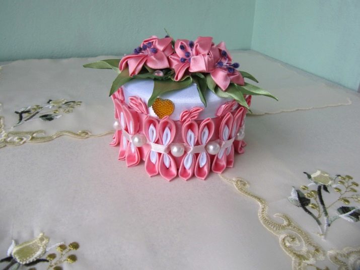 Kanzashi-style casket It will become a real decoration for a women's dressing table or an elegant chest of drawers - in such cute boxes you can store jewelry and jewelry, as well as useful little things for creativity. At the same time, it is not necessary to buy caskets in stores - using popular techniques of applied creativity, you can always make an exclusive product with your own hands.