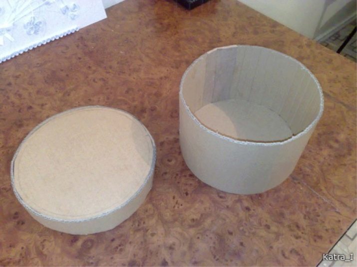 If not available, you can always make it yourself. For this, two circles with a diameter of 7 cm are cut out of thick cardboard - this will be the future cover and bottom of your box. Similarly, the sidewalls for the casket are cut from the same material.