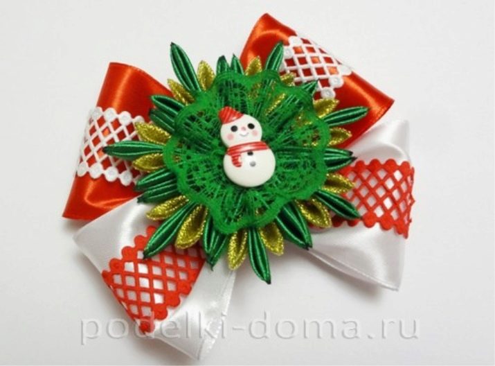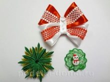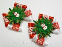 New Year's children’s snowflakes bows made using the kanzashi technique will decorate the festive outfit of any young princess. They can be pinned in the form of a brooch, made on an elastic band or hair clip. For the manufacture of the original product will require the following materials: