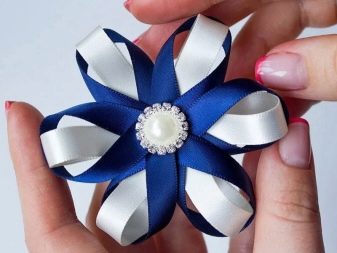 In the Kanzashi technique, it is not external decorations that are important, but the impeccability and cleanliness of the fabric elements. That is why it is better not to use too many decorative elements.