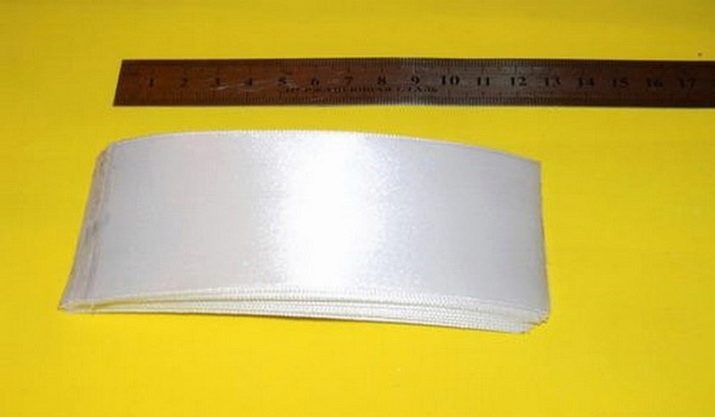 In addition, you will need a white satin ribbon. Enough 1 piece of 5 × 5 cm and 20 pieces measuring 25 × 30 mm. For cutting material, it is recommended to use a soldering iron or a tissue burner.