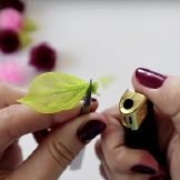 - We put the buds in the envelope leaves and glue them, we decorate the large flower with open leaves.