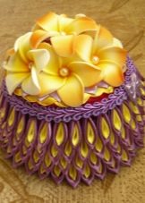 - The next row consists of three elements. Apply glue from below to half of the petal and press it to the base. One by one we attach, retreating so that the ungreased half comes into the next petal in a row. The third will close the first.