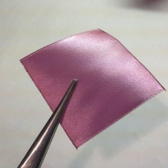 - For small roses, a narrow braid of organza is taken 2 cm wide, about 50 cm long.
