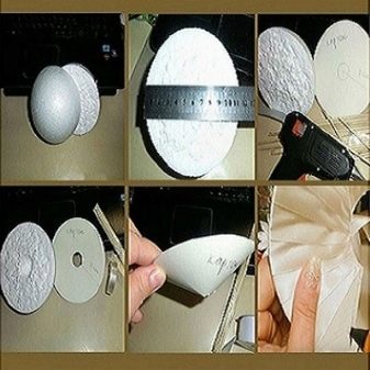 - We decorate the circle from cardboard with lace or satin from the center to the circle, glue the place of the cut.