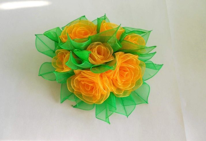 A characteristic feature of such products is the bulge and volume, plants are obtained as living. The fabric for work is selected elastic so that it can hold its shape. Craftswomen like bright juicy colors and interesting combinations, for example, satin and organza.