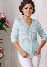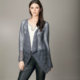- To make the winter version of an openwork cardigan gentle and thin, knit it from thin woolen threads, for example, merino wool with the addition of viscose.