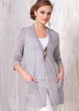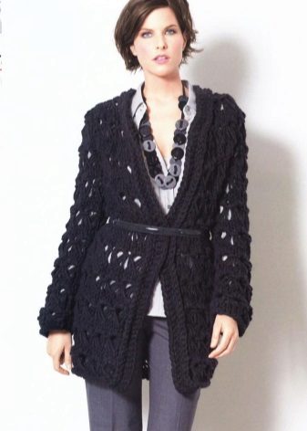 A cardigan with an openwork strap is able to decorate any fashionista. Openwork strap can be knitted along the entire length of the cardigan.