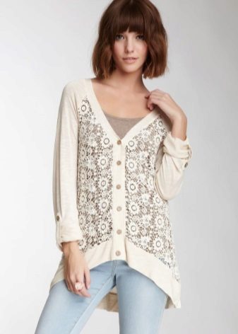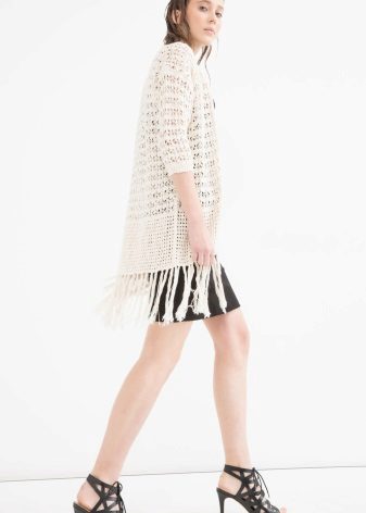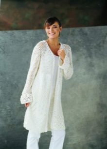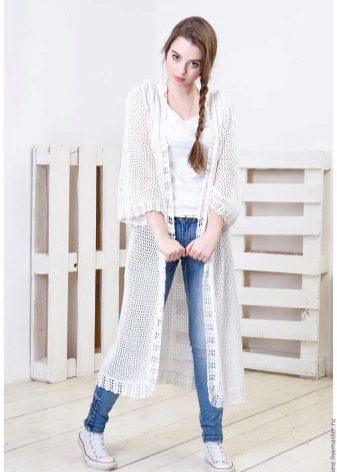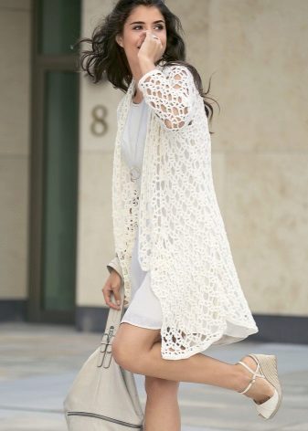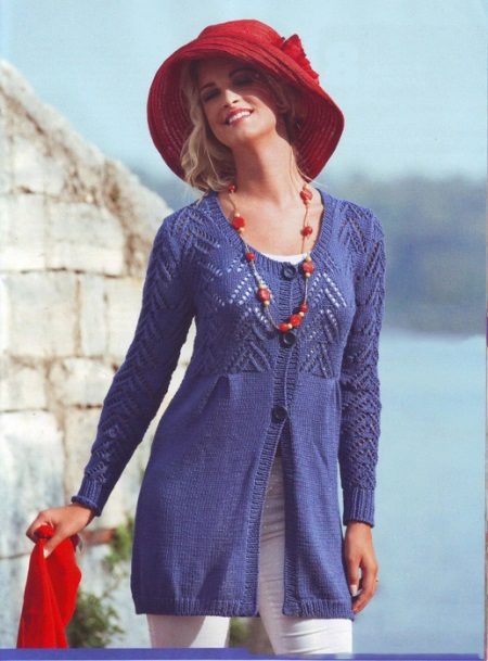 - Elongated summer cardigans are best knitted from the finest threads of angora.