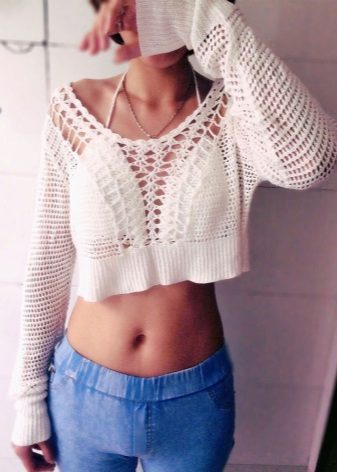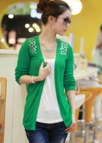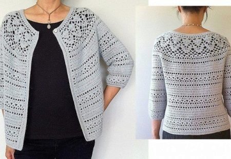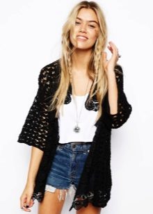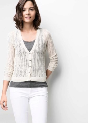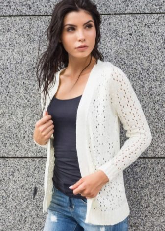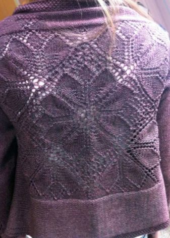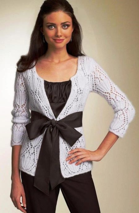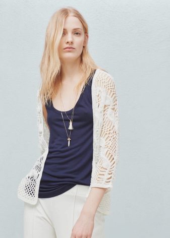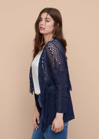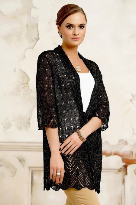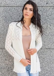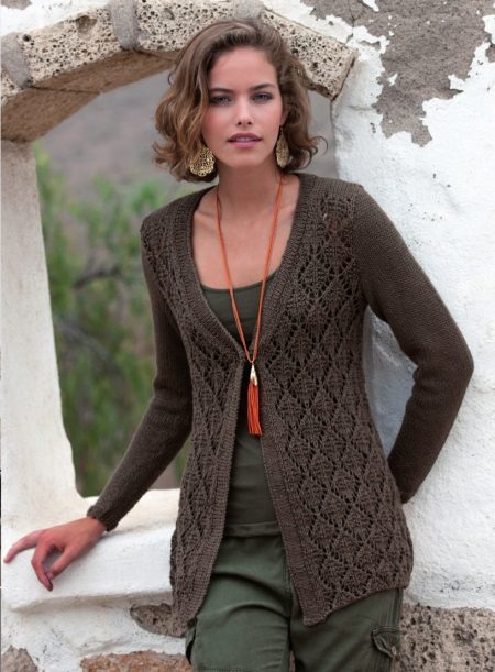 Such cardigans are popular among the younger generation of fashionistas. Openwork pattern can be located along the entire length of the back, and maybe even partially knitted.