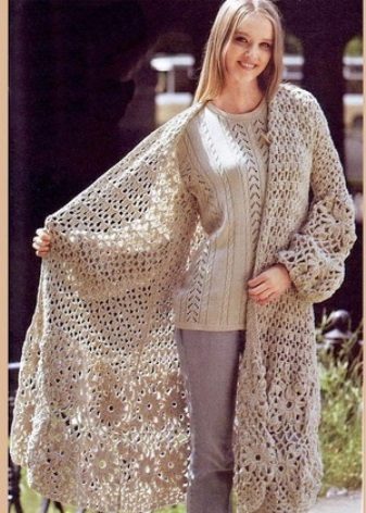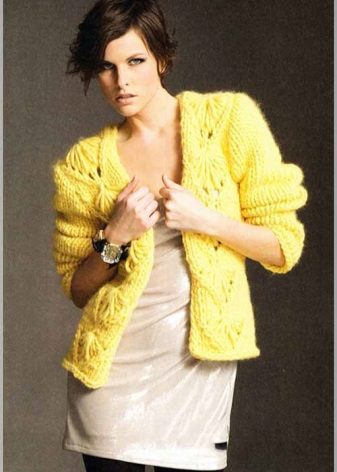 Some designers choose voluminous flowers as a pattern, which is especially true for summer models of openwork cardigans.