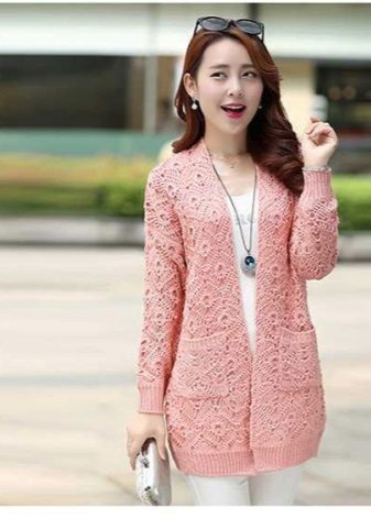 Summer models of openwork cardigans are made in bright, rich and light colors, for example, coral or scarlet.