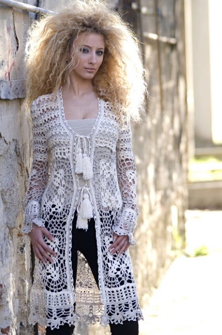 The shows of famous couturiers, hand-made installations tell about the diversity of the line of delicate cardigans. You can choose vintage models reminiscent of our grandmothers, or modern models of openwork cardigans, for example, oversize.