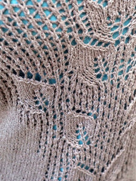 Openwork pattern on the back can be in the form of knitted squares or rhombs.