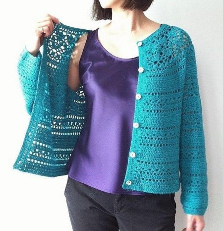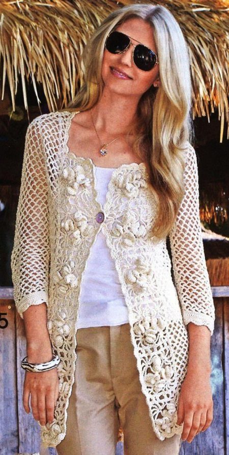 Most often, summer cardigans are crocheted from fantasy patterns.