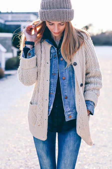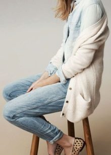 A long cardigan replaces fashionistas with a windbreaker or jacket in the cold season