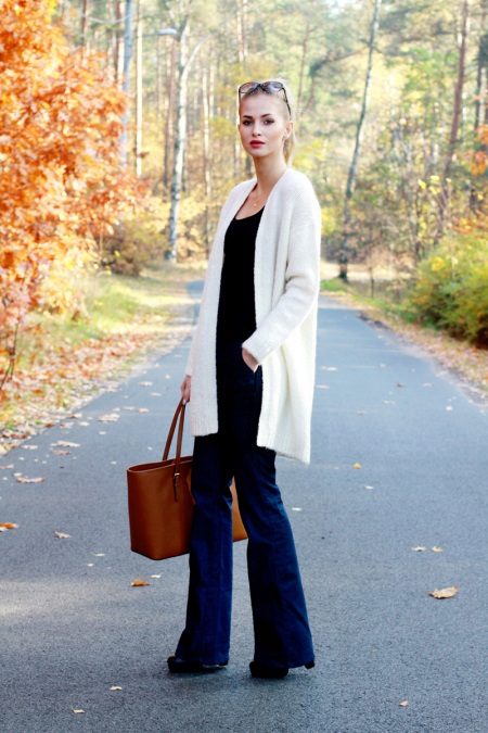 Such cardigans have remained in trend for several seasons. Specialists in the field of fashion recommend wearing long or short cardigans without buttons with a strap.
