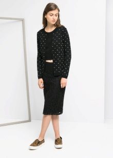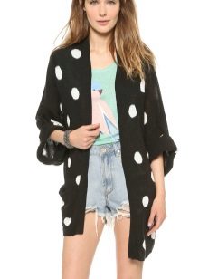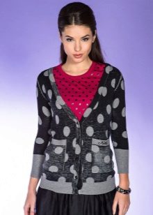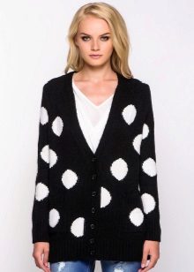 Black pea cardigans will suit ladies of any age. To correctly choose such a model for your figure, you should be guided by the rule: Large - small, small - large. That is, if you consider your figure slim, then you can safely buy black cardigans in large peas of any color. And if your proportions are far from ideal, then it is worth stopping at models in a classical black-and-white execution with a fine pattern.