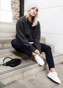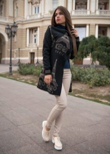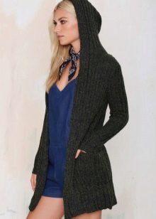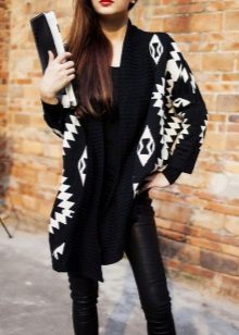 If you choose a model with a large geometric print, your image will be a great example of the urban trend in fashion. Having embellished the cardigan with white stripes on the sleeves, it will be quite possible to wear it with sweatpants. And the presence of a military-style camouflage hood will give you the appearance of a daring and courageous girl who is not afraid to openly declare herself.