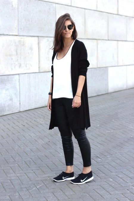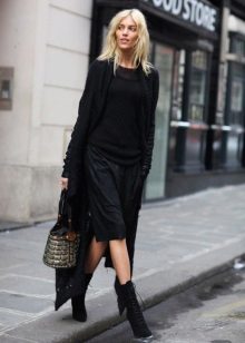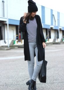 A black cardigan will be quite appropriate in a strict business, and stylish casual, and in a daring grunge style.