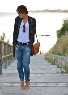 A black cardigan is a model that can fit into almost any image, because the color of the product provides not only monophonic models, but also various prints. When using ethnic prints or plain floral patterns, a cropped cardigan of the main black color will easily become an attribute of the Boho-chic style.