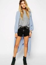 Various colored pastel colored cardigans are popular - pink, blue, yellow. They look very feminine and allow you to create truly summer and airy images. The material can be chosen at your discretion, knitwear or cotton is suitable for every day, and for a special case, choose flying chiffon.