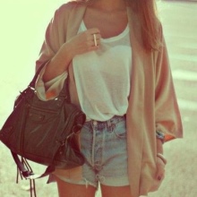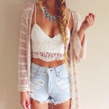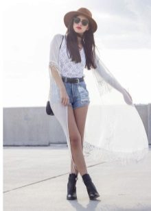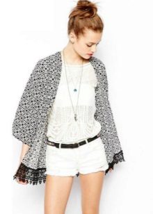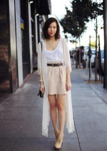 To create a casual look, wear it with shorts and a t-shirt or top. It’s great if there are ethnic motifs on the cardigan - fringe, embroidery and other active details.